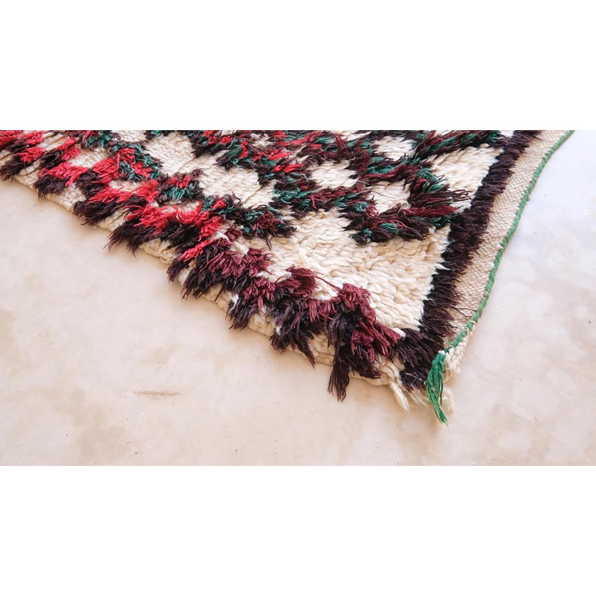 Indulge in the exquisite warmth of the Moroccan Berber Carpet, a true masterpiece crafted from pure wool in the majestic Atlas Mountains of Morocco. Imagine stepping onto this luxurious piece, feeling its soft fibers embrace your feet, while its captivating colors bring a touch of natural beauty to your home.