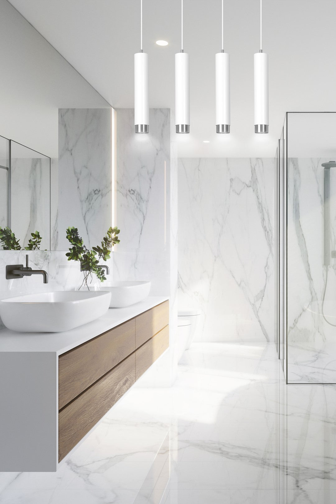 Designer pendant lamp with a trendy tubular construction. Made of metal, it is available in white or black with gold or chrome accents. It seamlessly fits into all types of interiors and is an ideal solution for the living room, kitchen, or home office