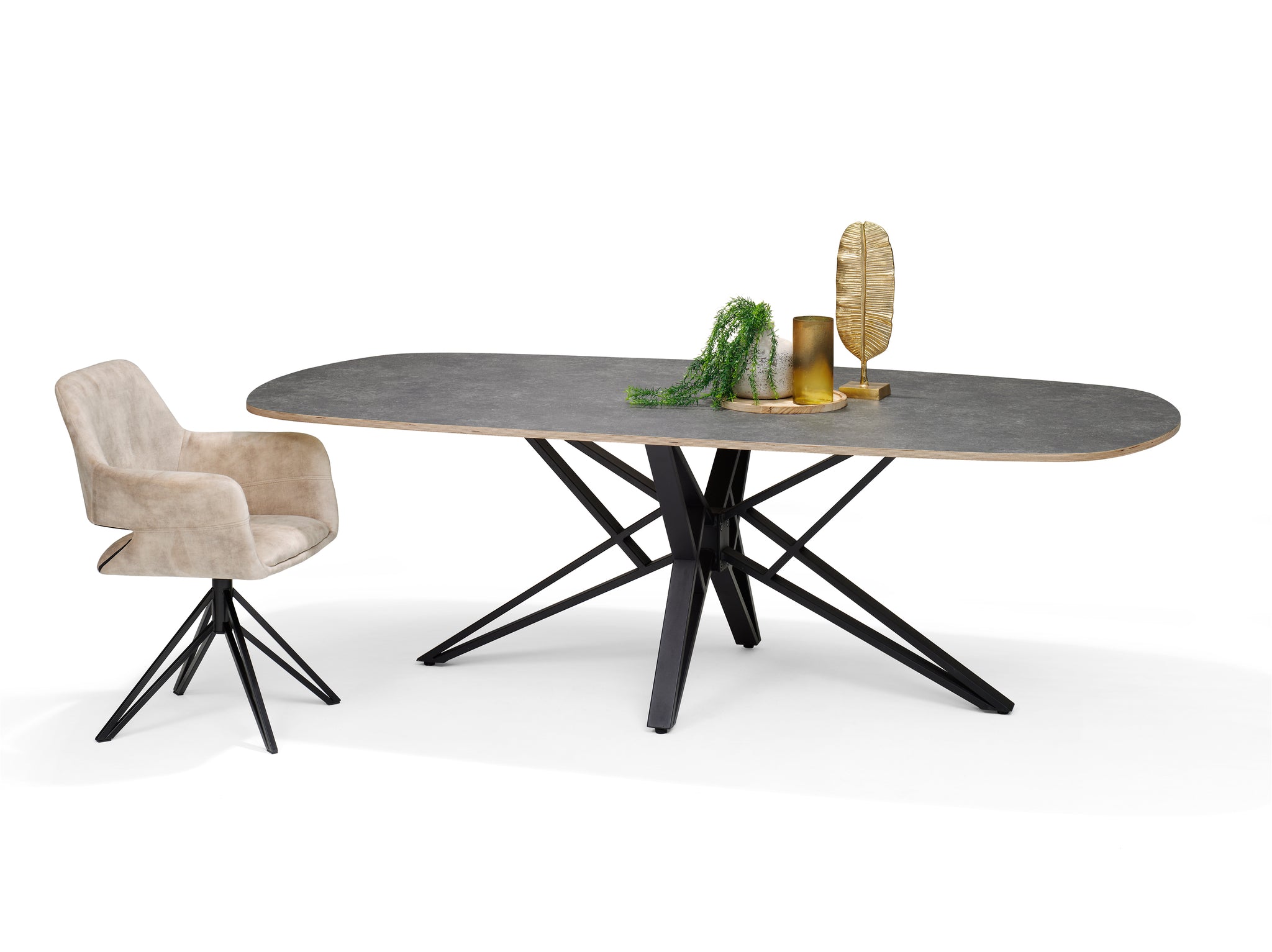 Katy armstoel met stof Aurora Velours Liver-Mole met draaivoet zwart metaal